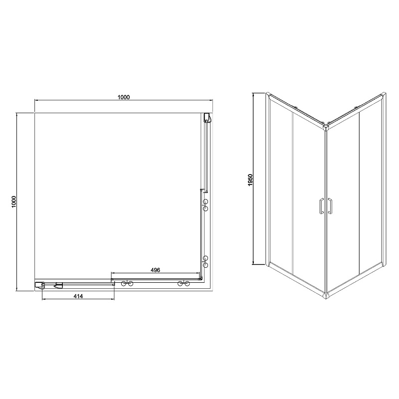 Душевое ограждение Azario GREENWOOD 1000х1000х1950, БЕЗ ПОДДОНА, прозрачное стекло 6 мм, цвет профиля серебро (AZ-NNE1142 1000)