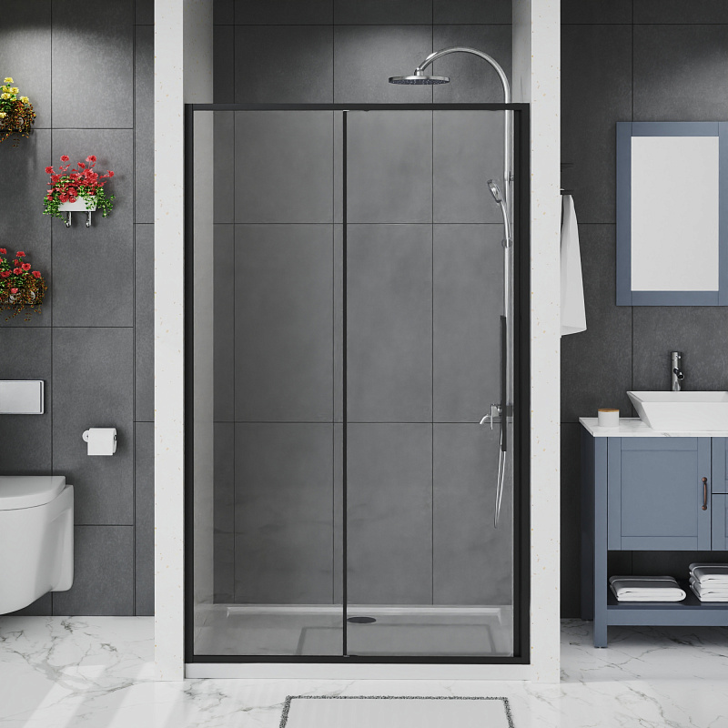 Душевая дверь Azario SHANGHAI 1100х1950 раздвижная, прозрачное стекло 6 мм, профиль черный матовый (AZ-Y43-110-MB-CL)