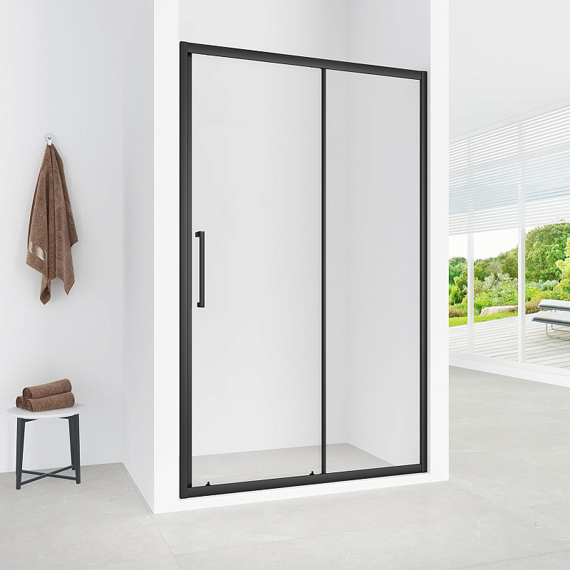 —Душевая дверь Loranto раздвижная 140х190, толщина полотна 6мм универсальная, цвет профиля черный матовый