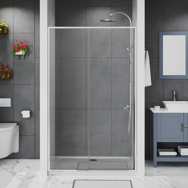 —Душевая дверь Azario Шанхай раздвижная 120х195, толщина полотна 6мм универсальная, цвет профиля хром