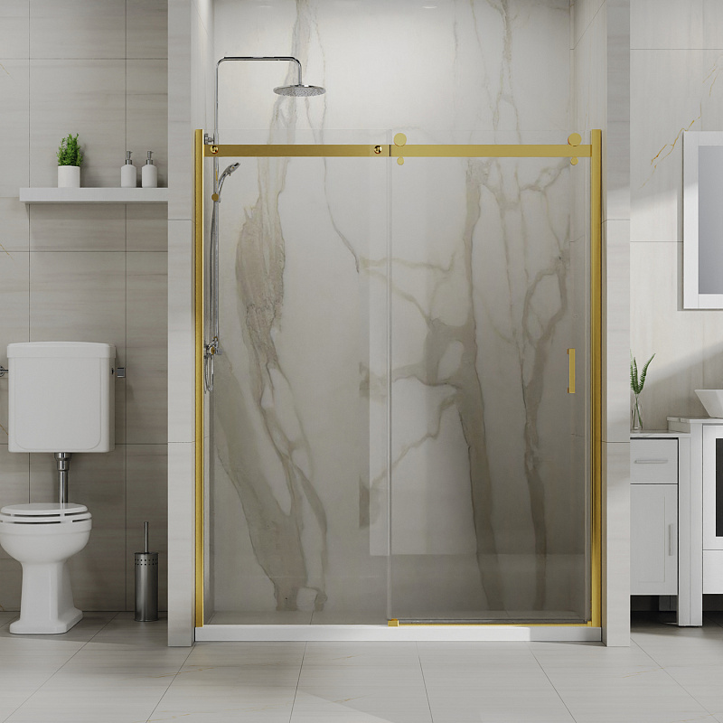 Душевая дверь Azario BERN раздвижная 170х195, толщина полотна 6мм универсальная, цвет профиля брашированное золото