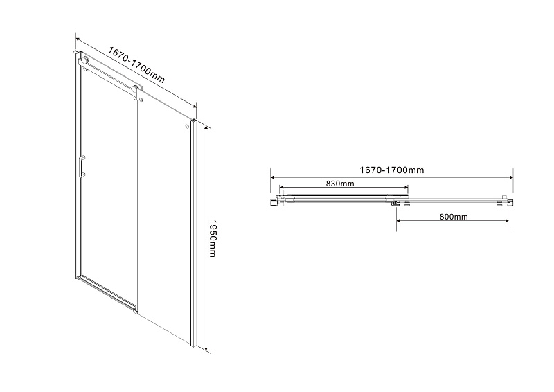 —Душевая дверь Azario BERN раздвижная 170х195, толщина полотна 6мм универсальная, цвет профиля черный матовый