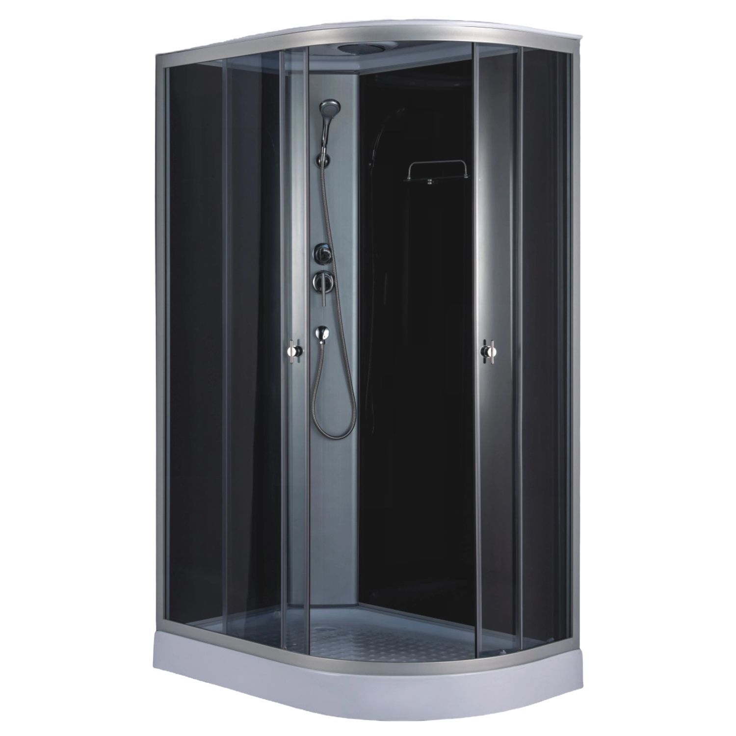 —Душевая кабина Loranto 1180х780х2080 левосторонняя, черное заднее стекло, поддон 14 см, тонированное стекло 4 мм, профиль хром матовый (CS-876EATM/B-120)