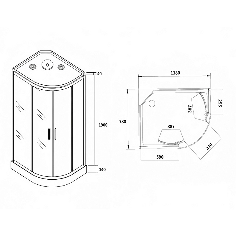 •  Размеры: 1180х780х2080 мм – оптимальное решение для просторных ванных комнат, обеспечивающее максимальный комфорт.