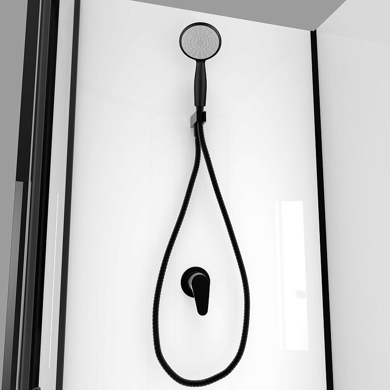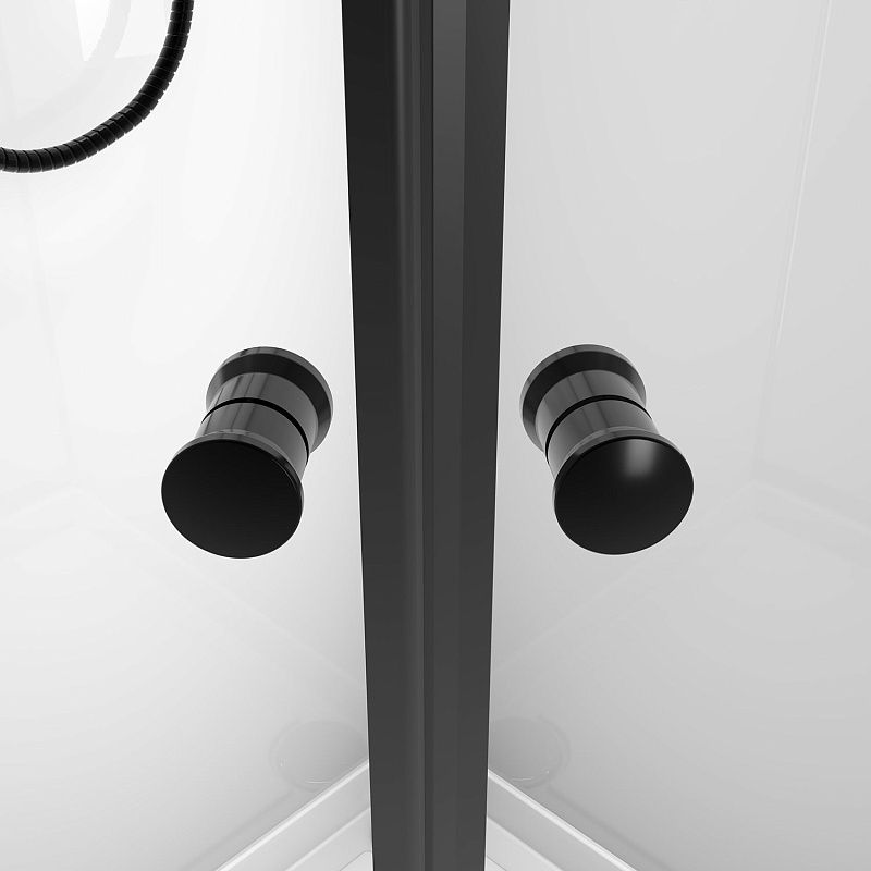 CS-21800 Душевая кабина 90x90x(190+15)см с низким поддоном 15см, прозрачное закаленное стекло 5 мм, задние стеклянные стенки БЕЛЫЕ, профиль черный-мат., черный  ручной душ + черный шланг для душа + черный держатель (3места)