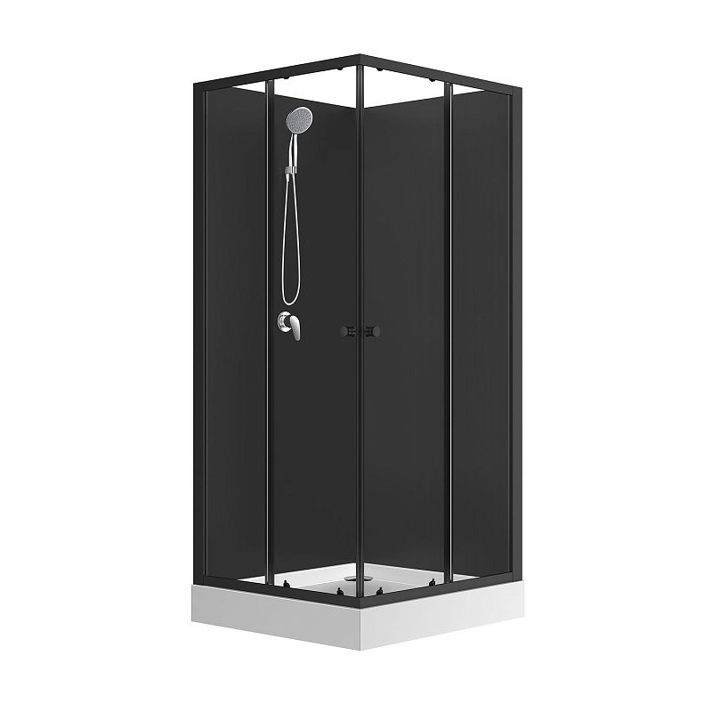 CS-21801BP Душевая кабина 90x90x(190+15)см с низким поддоном 15см, прозрачное закаленное стекло 5 мм,задние стеклянные стенки ЧЕРНЫЕ, профиль черный-мат., хромированный ручной душ + шланг для душа + хромированный держатель (3 места)