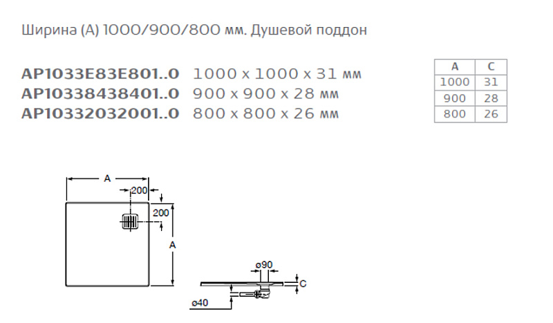—Душевой поддон Roca TERRAN 900x900 с сифоном и решеткой, белый (AP10338438401100)