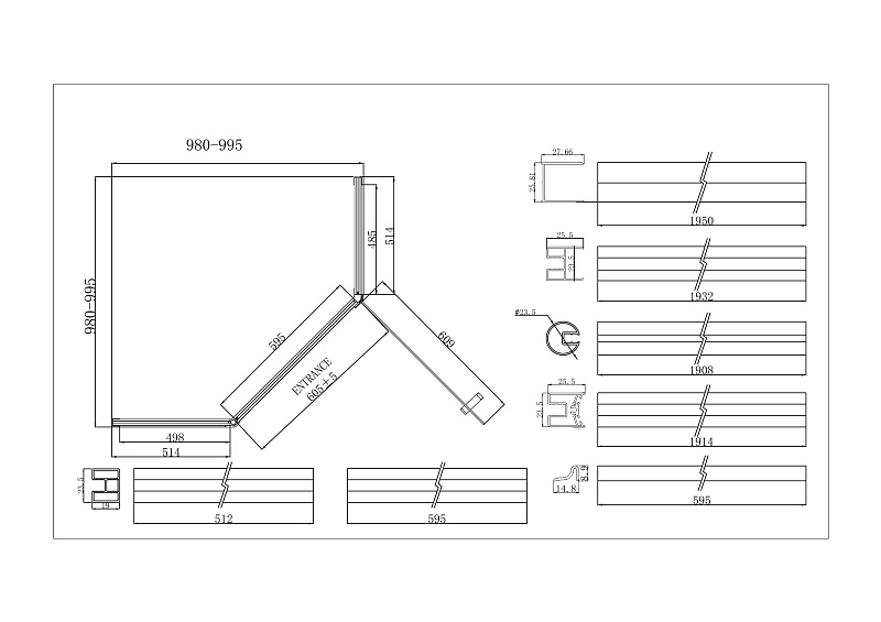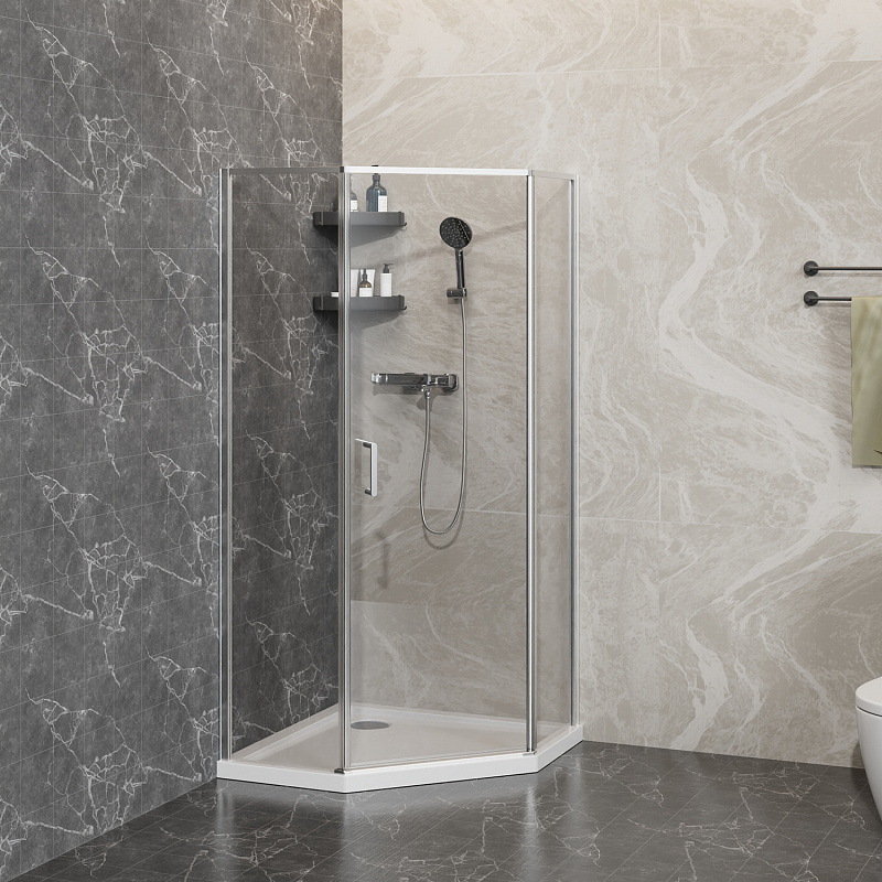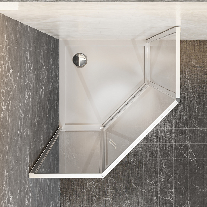 Пятиугольный душевой уголок, с универсальной распашной