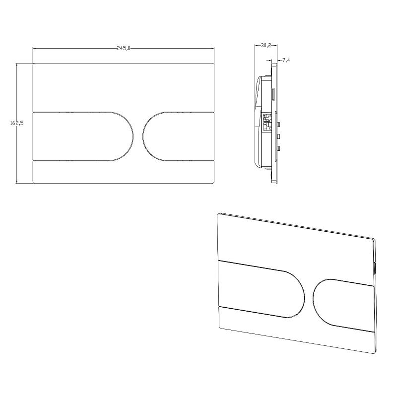 —Кнопка смыва AZARIO NEW-TS механическая, двойной смыв, овальные кнопки, нержавеющая сталь 304, черный (AZ-SS-001-B)