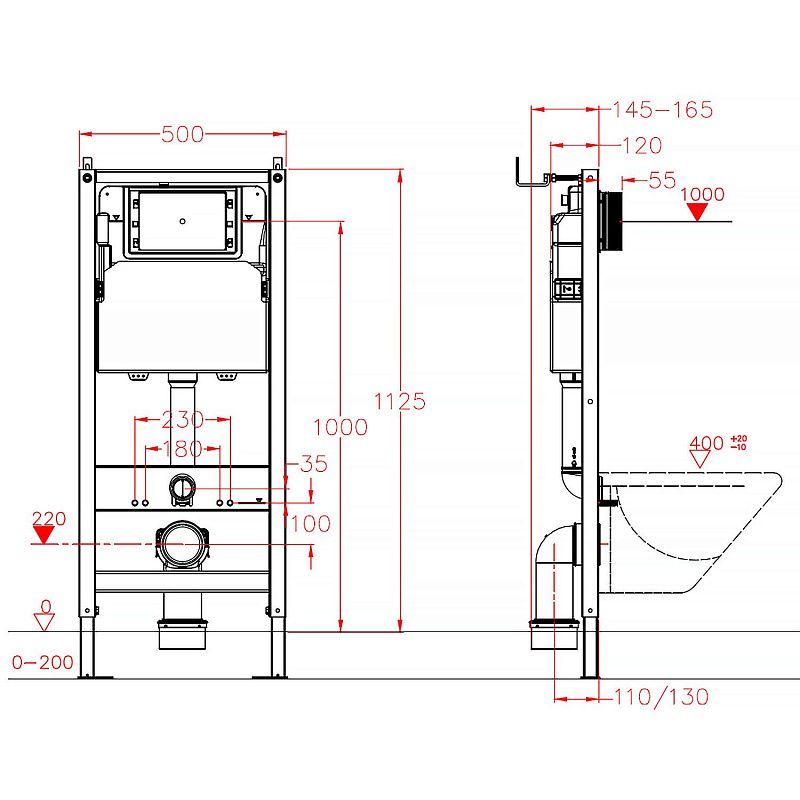 —Инсталляция для подвесного унитаза AZARIO NEW сталь, пластик, 2-х режимный смыв 3/6 л. (AZ-501A)