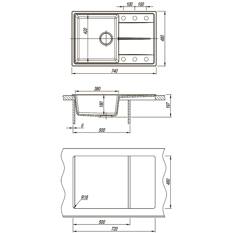 —Кухонная мойка AZARIO Izmir 740х480х197 кварцевая, прямоугольная, сифон в комплекте, цвет Песочный (CS00097682)
