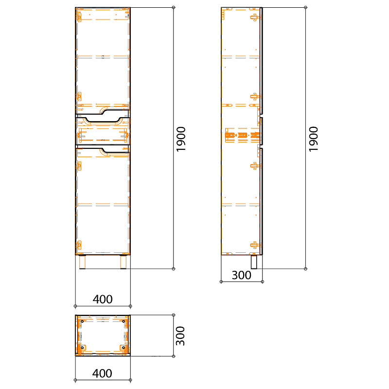 —Пенал напольный Azario KANTRI 40 400х300х1900 правосторонний, белый глянцевый (CS00097262)