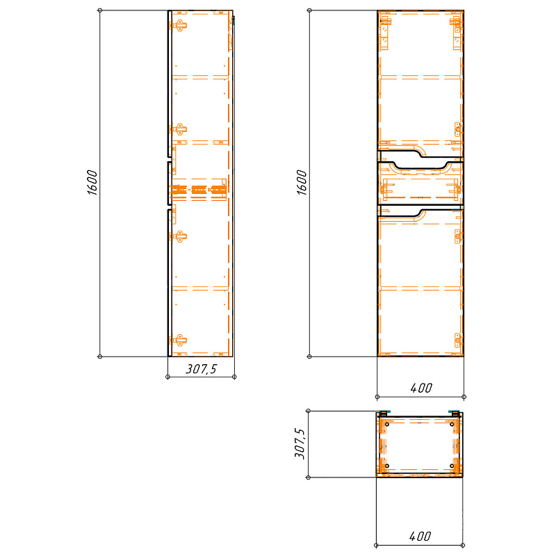 —Пенал Azario KANTRI 40 400х307х1600 подвесной, правосторонний, белый глянец (CS00097263)