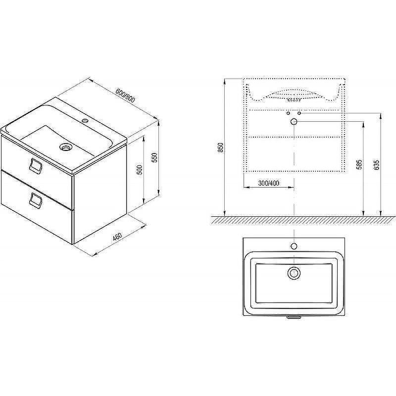 Тумба под раковину Ravak SD Comfort 80 X000001378 с двумя выдвижными ящиками. Характеристики: