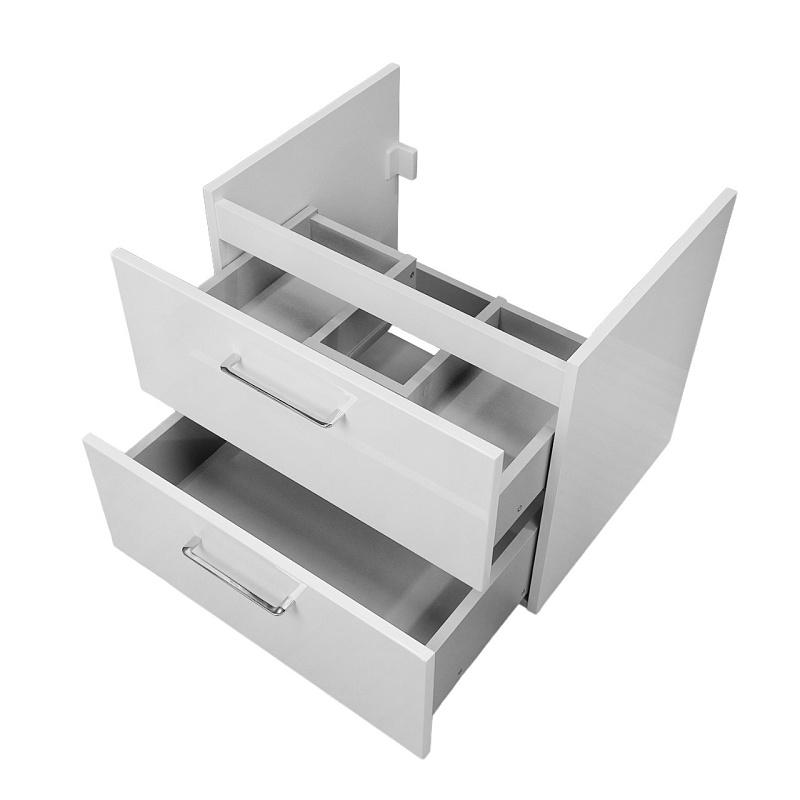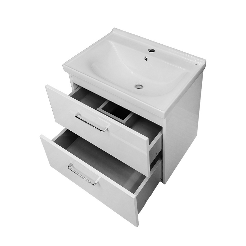 Подвесная конструкция: Тумба Ника 60 имеет подвесную конструкцию, что придает ванной комнате ощущение простора и легкости, а также значительно облегчает уборку пола.