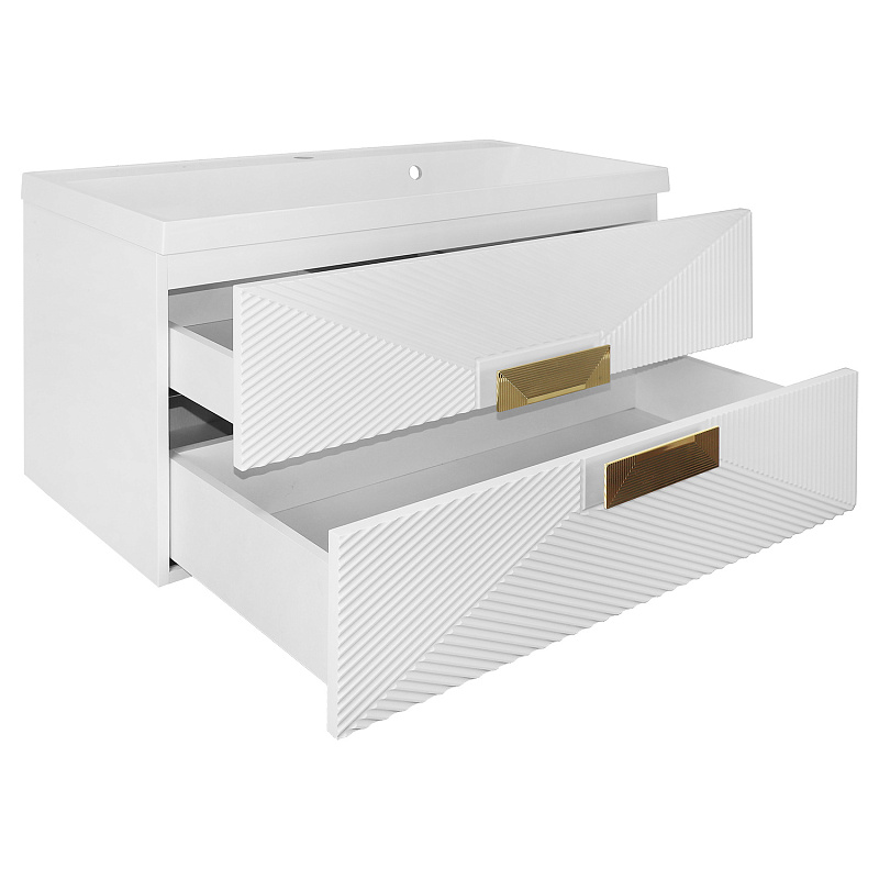 Комплект Azario ZENA Тумба 100/2 1000х450х585 подвесная, с раковиной CLASSIK 100, белый глянец, ручка золото (CS00097709)