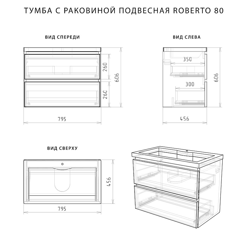 —Комплект тумба Итана Roberto 80 (795х56х06) подвесная, с раковиной Adel 80, белый глянец (375043)