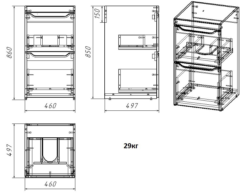доводчиках скрытого монтажа. Между ящиками