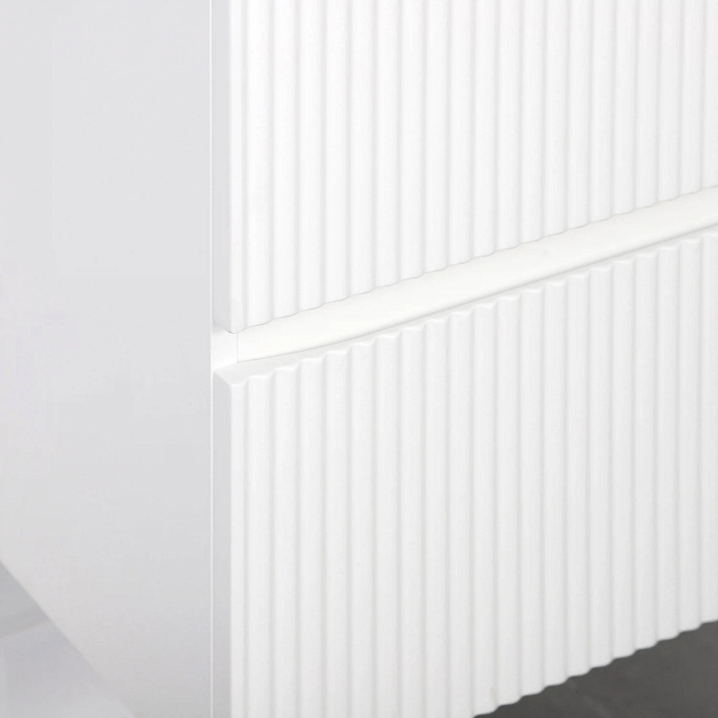 Коллекция Kate - воплотила в себе тренд на фактурные фасады. Идеальный "рубчик" - простое и стильное дизайнерское решение для декорирования фасадов - эта мебель бесспорно станет украшением современной ванной комнаты. Коллекция выполнена из МДФ и покрыта ПВХ пленкой, что делает её устойчивой к влаге, а значит долговечной. Удобные фрезерованные ручки, качественная фурнитура с доводчиками, вместительность - мы продумали все, чтобы мебель была не просто красивой, но еще и функциональной, приятной в использовании.