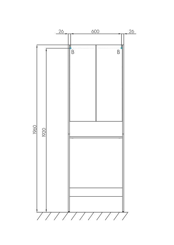 - За распашными створками, открывающимися за фасад, расположены 2 регулируемые по высоте полочки, позволяют при необходимости менять высоту, в зависимости от величины предметов для хранения.
