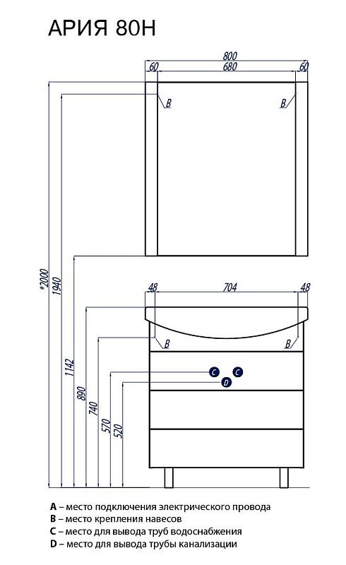 —Тумба под раковину AQUATON Ария 80 Н белая (1A141301AA010)
