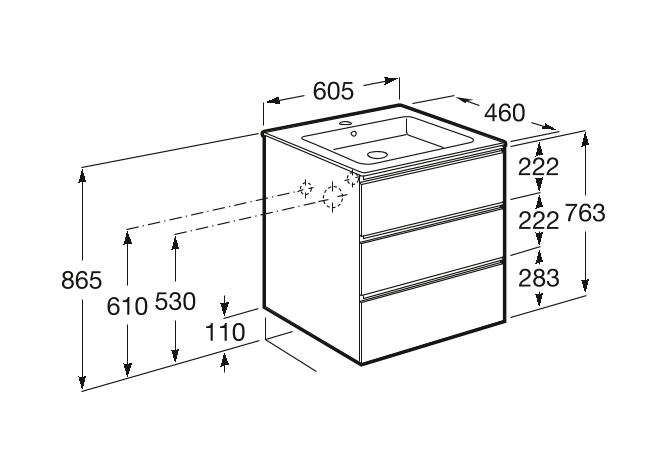 —Тумба под раковину Roca THE GAP 600 мм, подвесная, 3 ящика, белый глянец (A857404806)