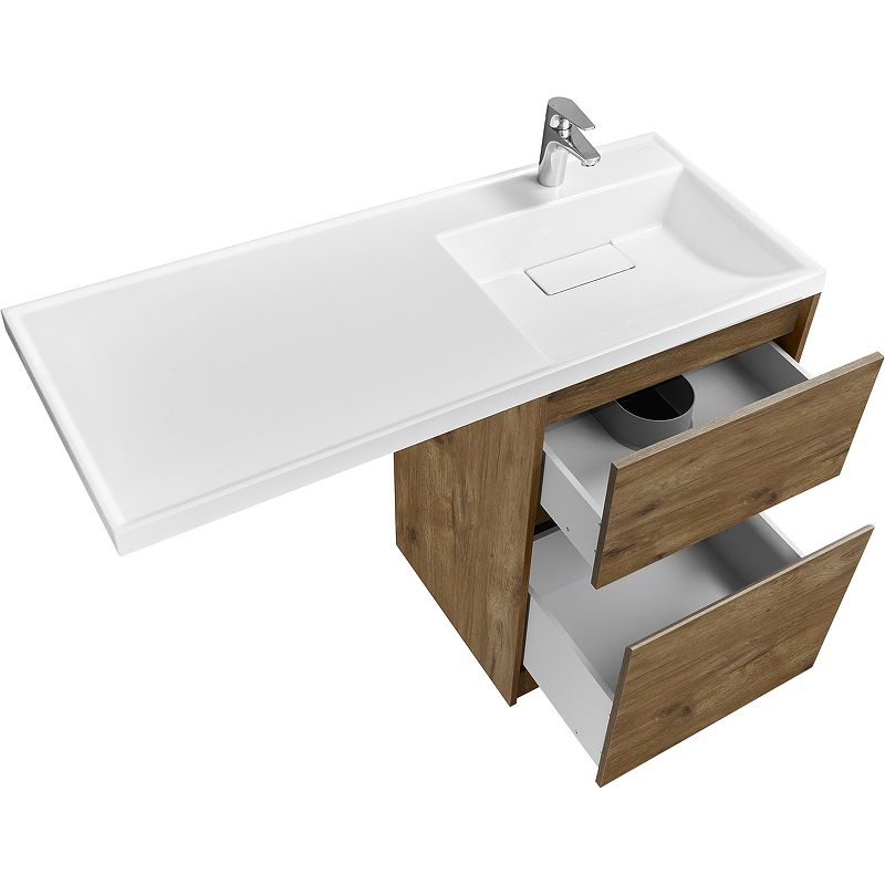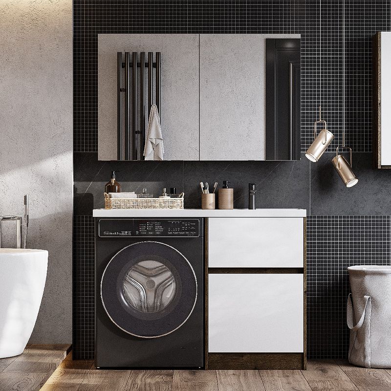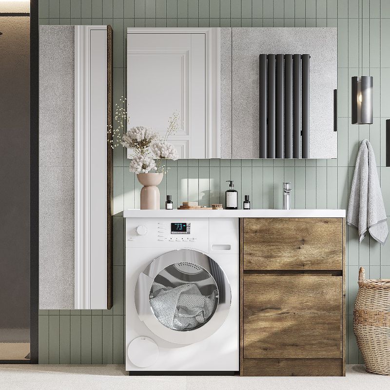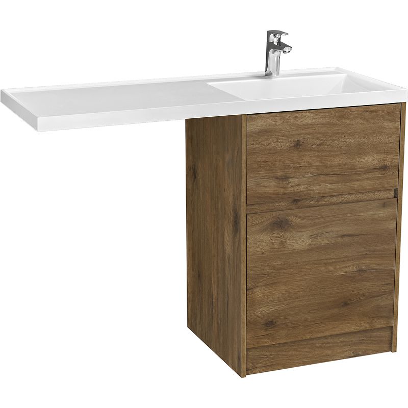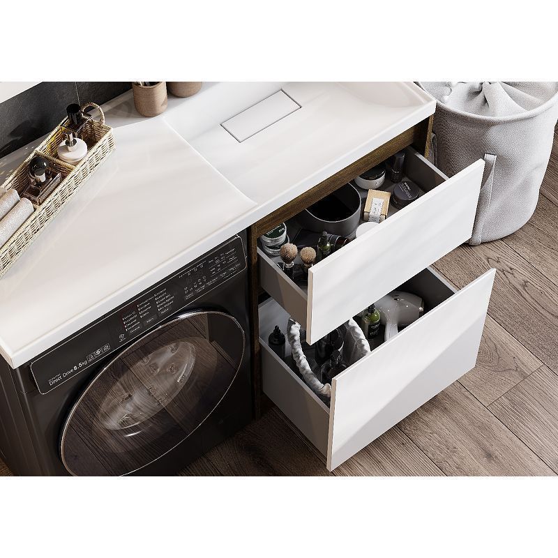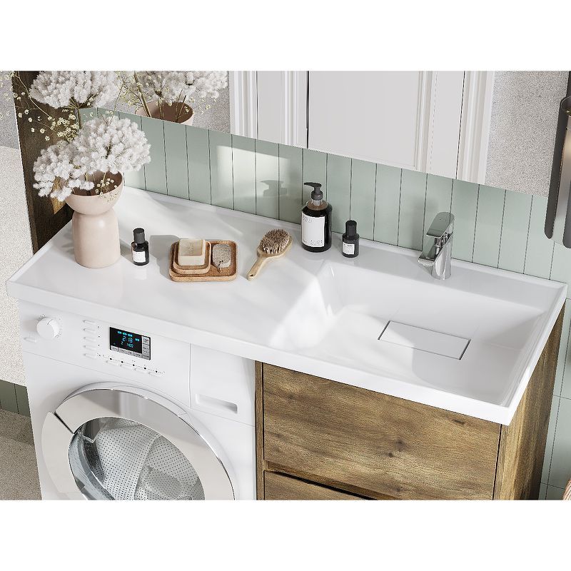 Тумба Лондри под стиральную машину выполнена из влагостойкой ламинированной плиты в древесной отделке. Корпус тумбы и фасад приобретаются отдельно. Тумбы комплектуются фасадами как с такой же древесной текстурой, так и в универсальном белом глянцевом цвете – это позволяет выбрать модель тумбы в соответствии с личными предпочтениями, создав наиболее удачное решение для конкретного интерьера ванной комнаты. Верхний ящик открывается с помощью системы push-to-open, а нижний - за фасад с помощью удобного выпила под углом. Ящики выдерживают нагрузку до 25 кг. Тумба установлена на регулируемые опоры, которые находятся за цоколем. Тумба комплектуется раковиной Лондри 120 из прочного литого мрамора, который устойчив к воздействию химических средств. Широкое крыло раковины обеспечивает ванную комнату дополнительным функциональным пространством. Дополнительно к тумбе можно приобрести шкаф-колонну Лондри и зеркальный шкаф Лондри 120.