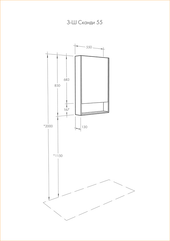 —Зеркало-шкаф AQUATON Сканди 55 дуб рустикальный (1A252102SDZ90)