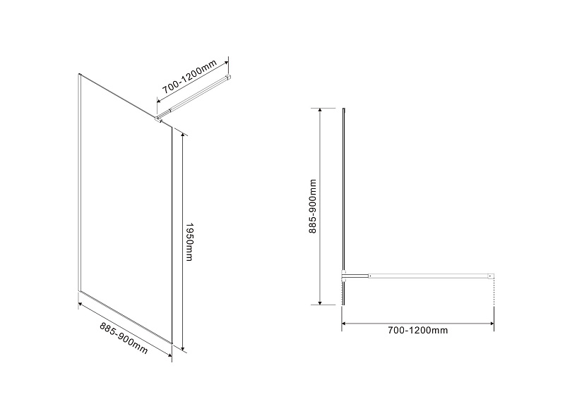 —Душевая перегородка Azario Walk-in 900х1950 прозрачное стекло 8 мм, профиль брашированное золото (AZ-251-90-BGL-CL)