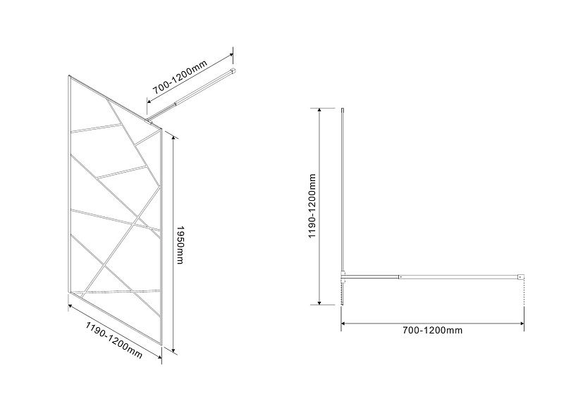 —Душевая перегородка Azario Валк-ин 1200x1950 в рамке, рифленое стекло, толщина стекла 8 мм, профиль брашированное золото (AZ-271-120-BGL-CRF)