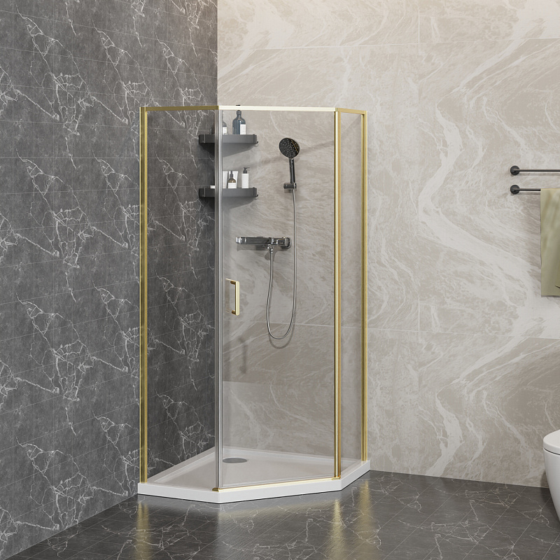 Пятиугольный душевой уголок, с универсальной распашной