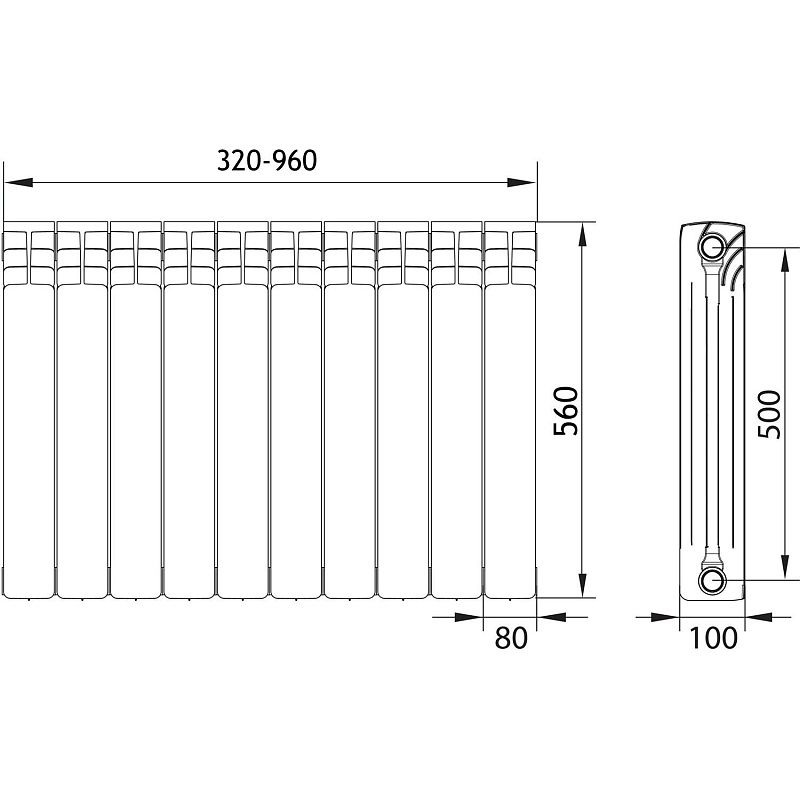 Радиатор биметаллический AZARIO BM500/100 4 секции, белый (BM500/100/4)