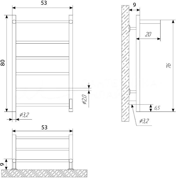 Оснащение: световой индикатор на корпусе / нагревательный кабель, расположенный внутри электрического полотенцесушителя / крепления