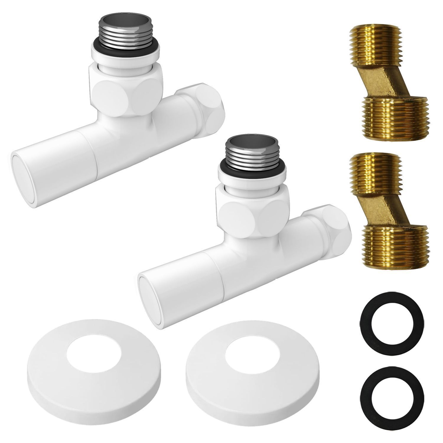 —Соединение угловое с круглым вентилем для полотенцесушителей Azario гайка-штуцер 3/4"х1/2", белый (AZ83854FW)
