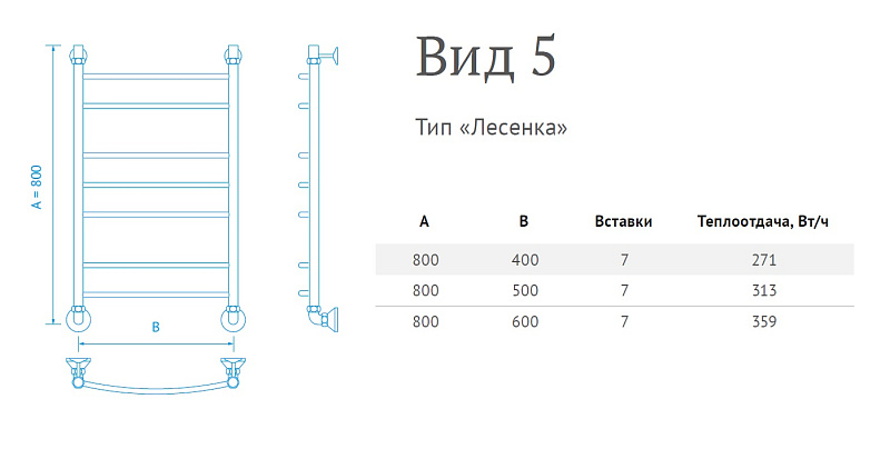 Полотенцесушитель водяной Маргроид Лесенка "Вид 5" без полки 80х50, хром