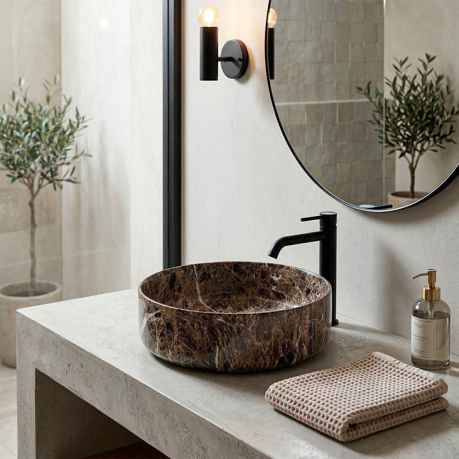 —Раковина-чаша Azario 355х355х120 накладная, круглая, темный мрамор (AZ-3134-M816)