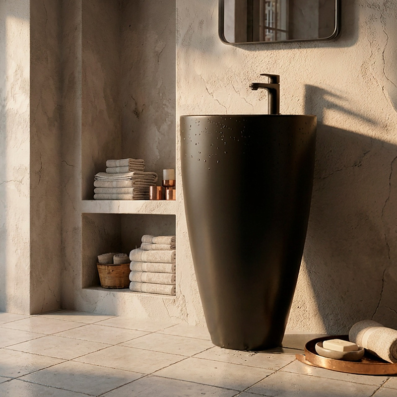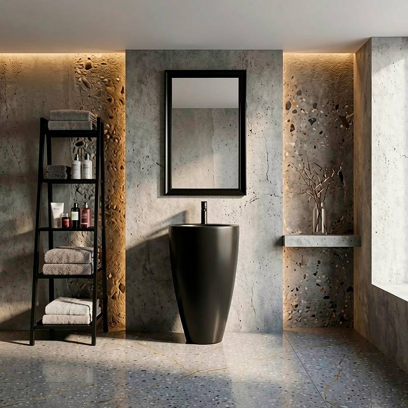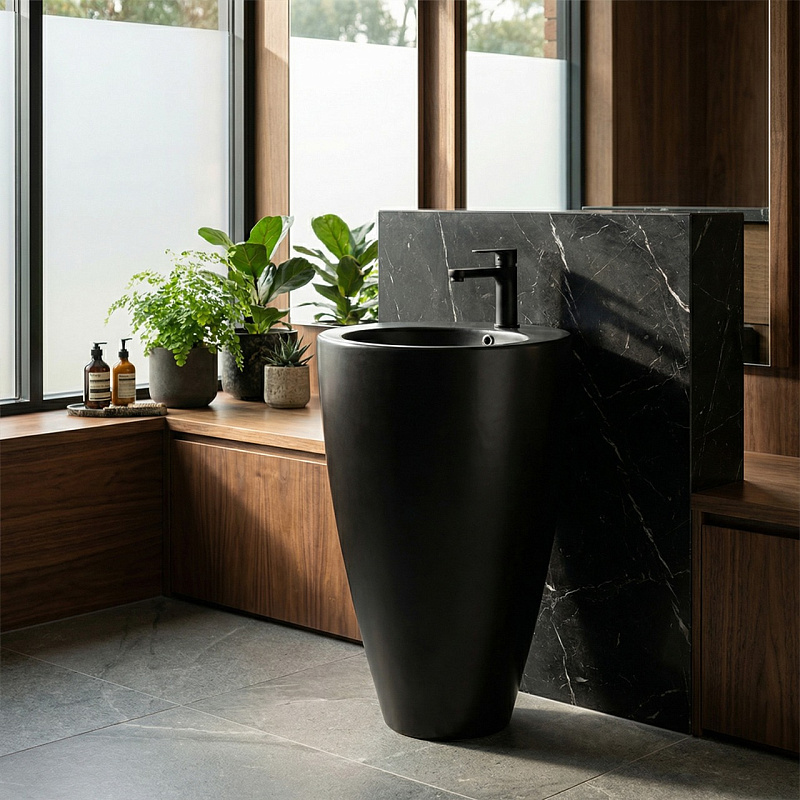 —Раковина напольная Azario Комелла 490х490х840 отдельностоящая круглая, черный матовый (AZ-311MB)