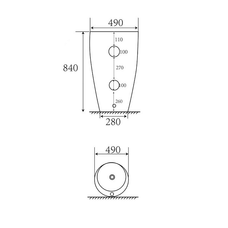 Раковина напольная Azario Комелла 490х490х840 отдельностоящая круглая, черный матовый (AZ-311MB)