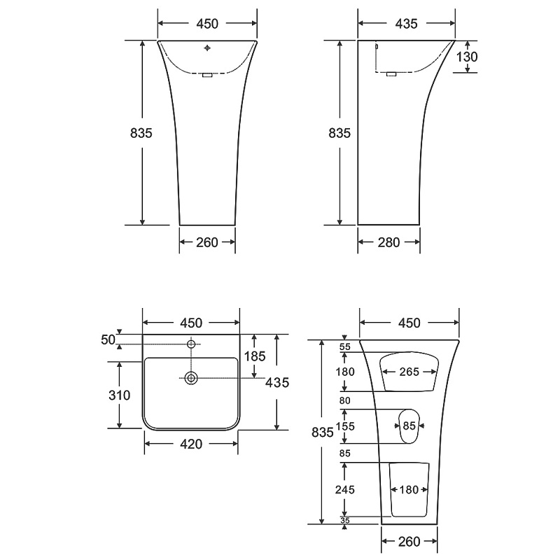 Раковина напольная AZARIO FRETTA SQUARE 450х435х835 отдельностоящая, прямоугольная (AZ-315)