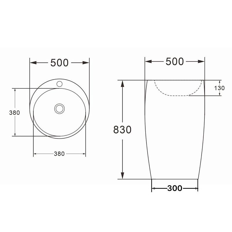 Раковина напольная Azario Деа 500х500х830 отдельностоящая круглая, белый (AZ-203)