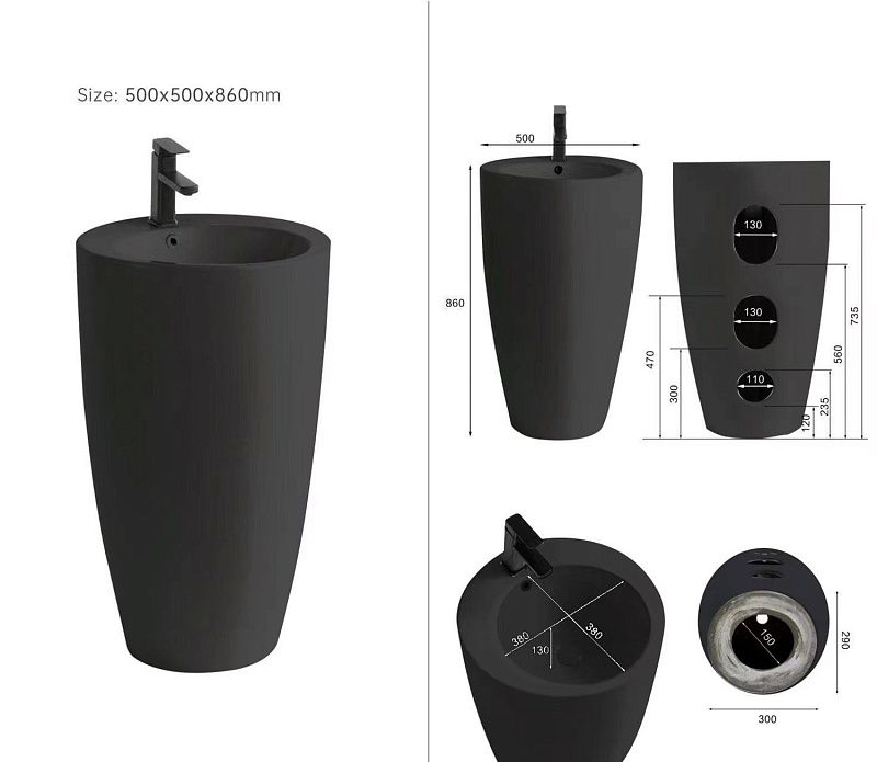 —Раковина напольная Azario Деа 500х500х860 отдельностоящая круглая, черный (AZ-203MB)