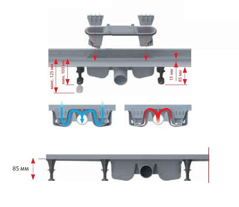 ¡ Высота монтажа от 85 мм