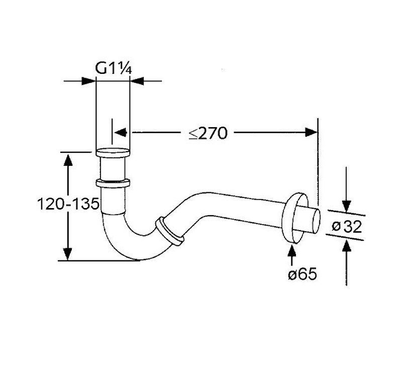 Сифон для биде Kludi 1031105-00 трубчатого типа. Цвет: хром.