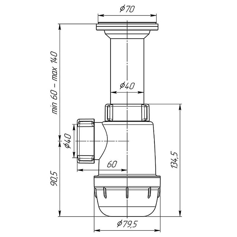 Стандартные размеры делают сифон универсальным решением для большинства кухонных моек.