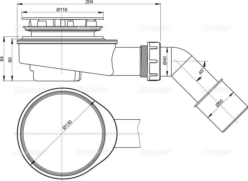 —Сифон для душевого поддона Alcadrain заниженный, хромированный (A491CR)