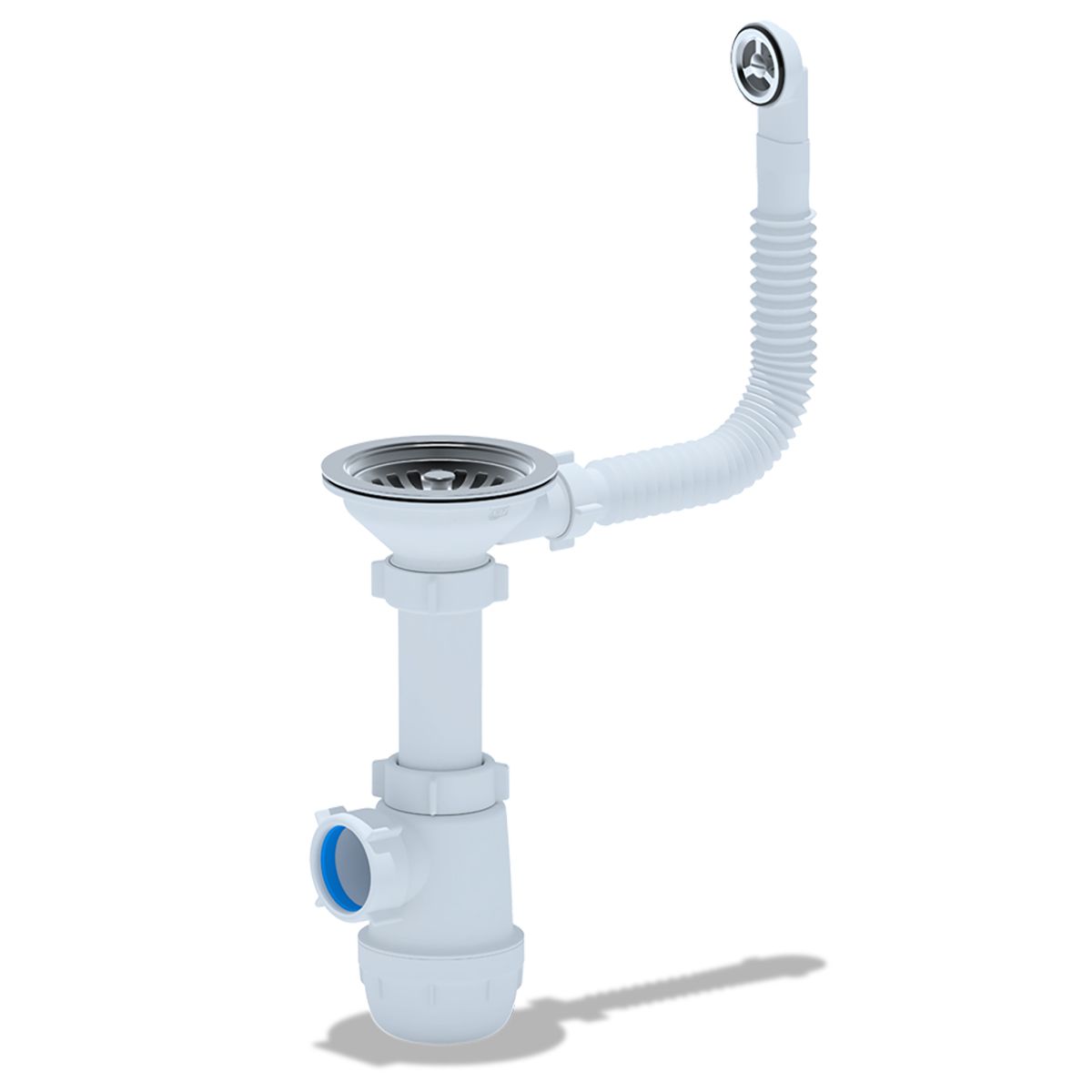 • Сифон сливной АНИ пласт A0142S для кухонных моек с диаметром сливного отверстия 90-98 мм