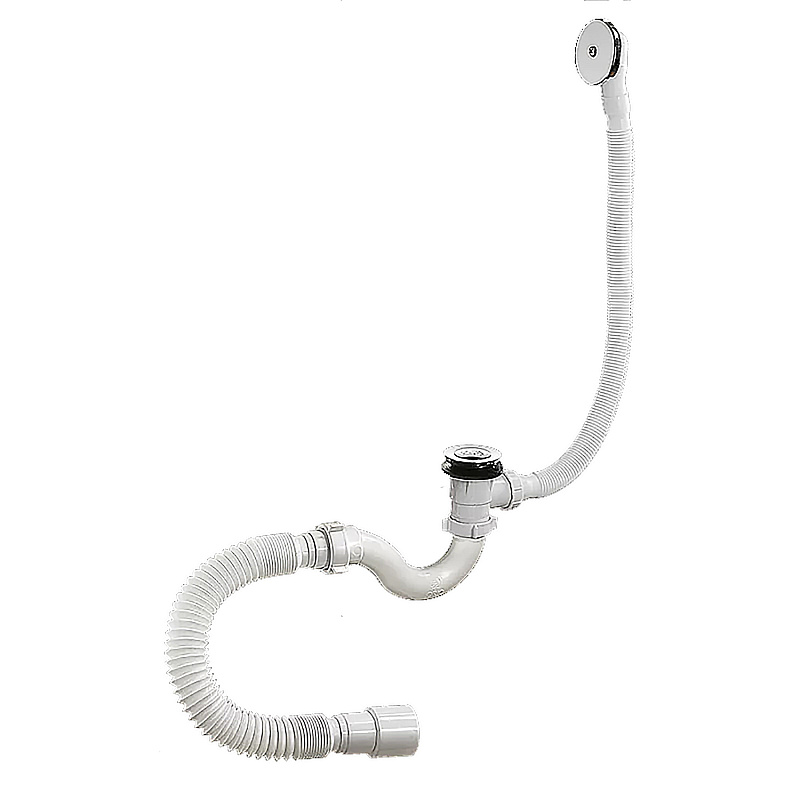 Сифон 1 1/2"х40, с переливом и автоматическим сливом с системой «клик-клак», для ванн и глубоких душевых поддонов Конструкция сифона S-образная, прямоточная, самоочищающаяся. Отвод в канализацию гибкая труба 40-40/50.