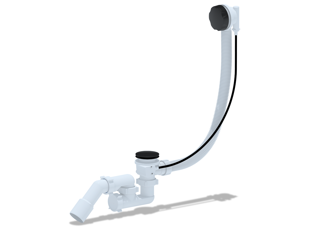 EM321BL Перелив п/а с сифоном регулируемый 520 мм, трос 580мм, ручка черная
