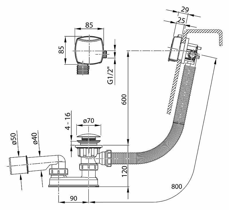 СТОЧНЫЙ КОМПЛЕКТ ДЛЯ ВАННЫ С ЗАПОЛНЕНИЕМ ПЕРЕЛИВОМ