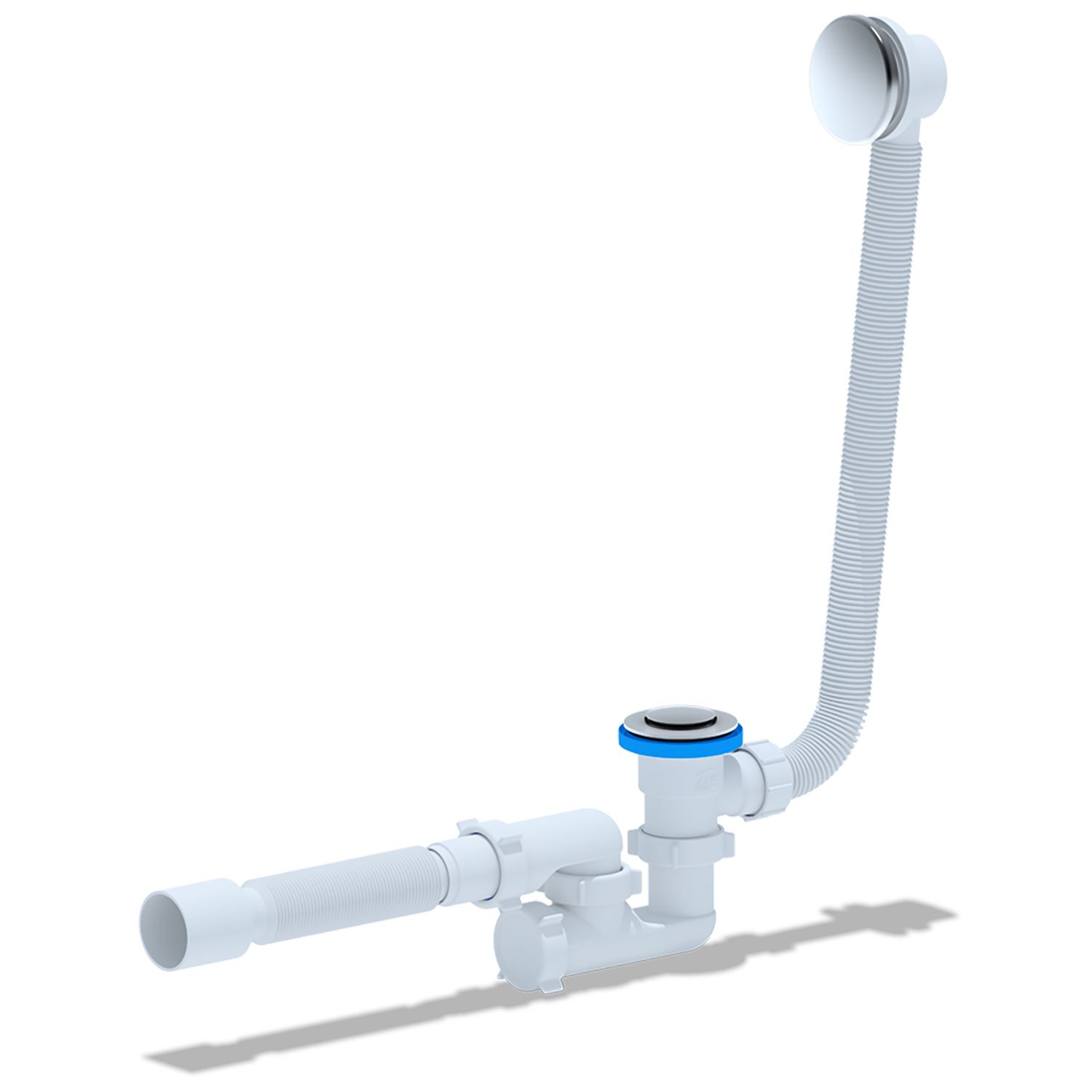 Слив-перелив АНИ Пласт для ванны, автомат, регулируемый клик-клак 1 1/2"х40 с гофрой 40/50 с сеткой (EC255S)